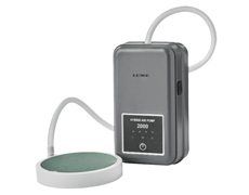 |  | | ○充電式エアポンプ オキシー | コンパクトで薄型デザイン。従来の乾電池よりも静かな作動音。 | |