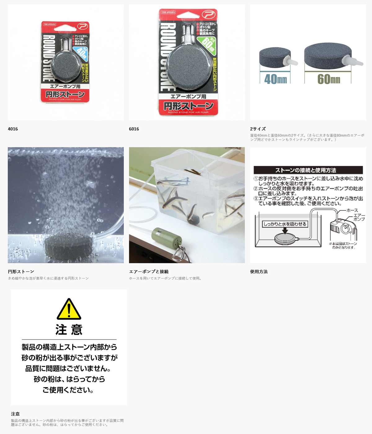 (※1)泡の出方には個体差がございます。ご使用前には必ずしっかりと水を吸わせてください。 (※2)エアーポンプにより泡の大きさ、量は異なります。 |