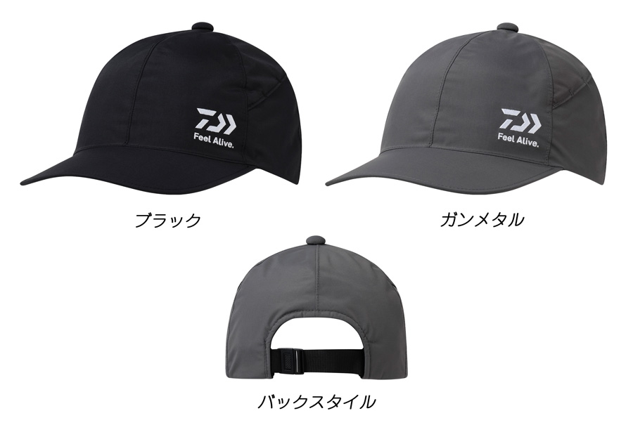 【ダイワ|キャップ|帽子|防水】| RAINMAX ベンチレーションキャップ DC-3226 |  | | 防水透湿性に優れるRAINMAX素材を採用したレインキャップ。 蒸れを軽減するベンチレーション付き。 額が濡れないようバイザーと本体の接合部まで防水性を保つ仕様。普段でもかぶりやすいデザイン。 水面からの光の反射を抑えるバイザー裏ブラック仕様。 |