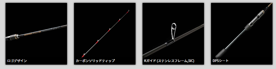 <ブランク> ブランクのブレを極力排し、収束が早いティップがアタリをいち早く捉えます。 ティップ部に繊細なカーボンソリッドとマグナフレックス製法を採用。負荷に応じてスムースに曲がるアクションを実現。 バット部には、C・N・T素材を使用しネバリ要素をアップ。 ジョイント部の口元には西陣織カーボンを採用。 <ガイド> 全機種ステンレスフレーム、小口径のSICリング。ティップ部にLDB、ベリーからバット部にKガイドを採用。 ※トラブル防止の為、表示内のラインをご使用下さい。 <グリップ> フォアグリップとリールシート部には、西陣織仕様のカーボンパイプを採用。 <デザイン> ティップ部には目視しやすいカラーのスレッドを採用。ブランクはシルバーで塗装し非常に見やすいデザインです。 <注意> 非常に繊細なティップセクションの為、キャストする際はアンダーハンドキャスト等、ソフトなキャストを推奨します。キャストで破損した場合、使用状況において保障致しかねる場合があります。 大きく跳ね上げるシャクリ方には向きません。巻きシャクリや軽めのジャークなどでアピールを行うようにしてください。 ランディング時は、ティップの曲げすぎにご注意の上で取り込みを行ってください。 また、ランディングネットや専用のギャフもお使いください。