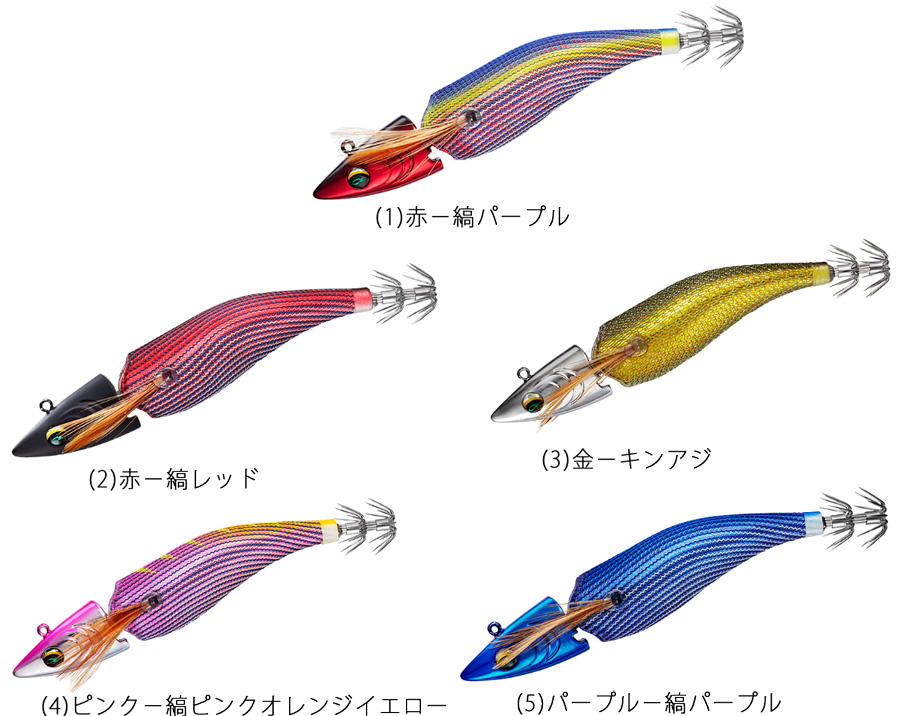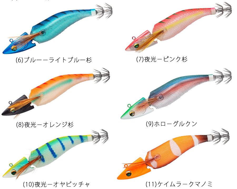 今までにない革新的なエギの提案 縦ジョイント構造によりアクション時に艶めかしく滑らかなドルフィンアクションを発生させる。また仮面シンカーボートIIを装着可能なため、様々なシチュエーションにも対応。ティップランを快適にする速いフォールスピードとヒット時にはジョイント部がイカの動きに追従することでバレも軽減。