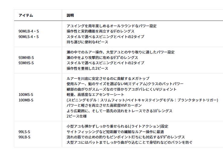 鮎をルアーで釣る新メソッド、アユイング用に開発された専用ロッド。