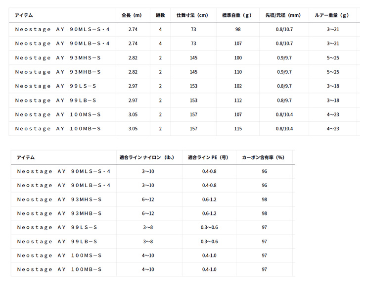 ■ロッド:Neostage AY 90MLS-4・S、93MHS-S