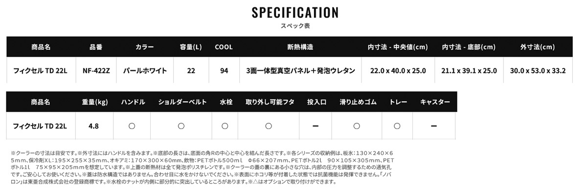 【シマノ|クーラー|フィクセル|22L】| フィクセル TD 22L NF-422Z |  | | 高い保冷性能と使いやすさで釣行に応える、クーラーボックスの中核モデル |