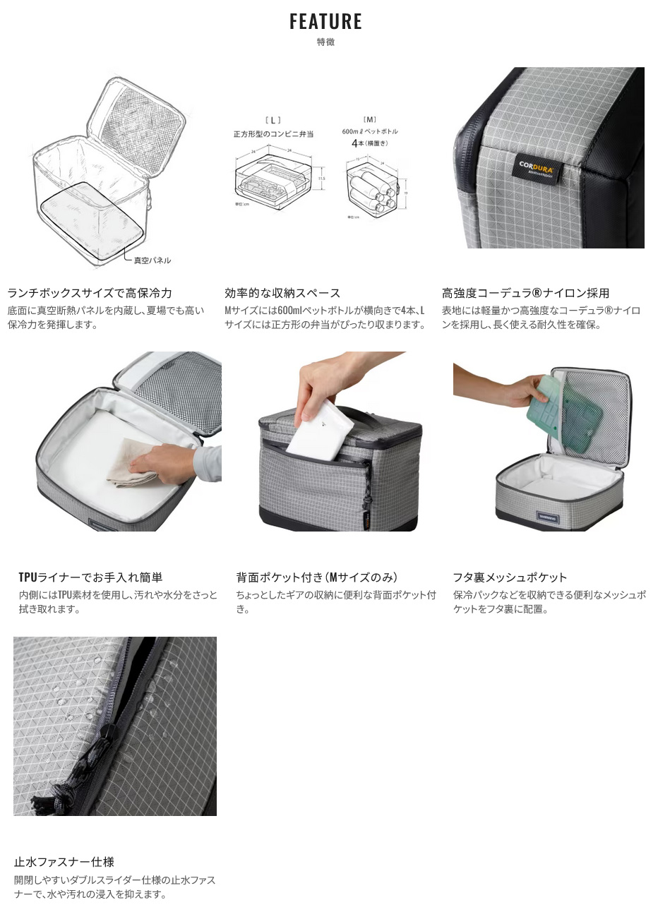 【シマノ|クーラー|ソフトクーラー|コンパクト】| ミニソフトクーラー プレミアム BA-012Z |  | | | 真空断熱パネルを搭載し、ペットボトル氷1本で夏場も約8時間の保冷力を発揮する、高性能ランチボックスです。ショアランガンや渓流釣行など、クーラーを持ち歩きにくい場面で活躍。船釣りでは、魚用クーラーと分けて食料を保管する用途にも便利です。コンパクト設計でタックルバッグにも収納しやすく、暑い季節の釣行を快適にサポートします。 |