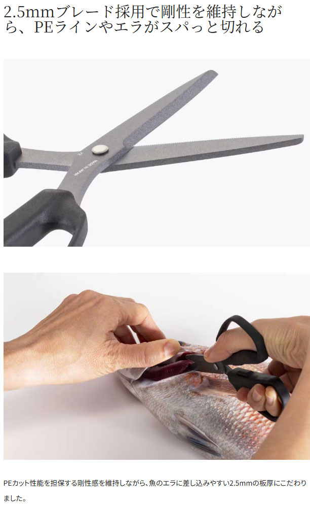 スパシザーとスパシザー ラージの中間サイズ、ちょうど良いPE&エラ切りハサミ。