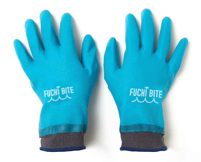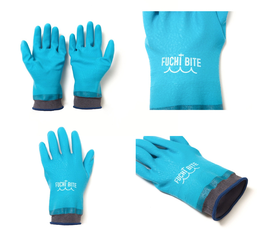 【FUCHIBITE|手袋|グローブ】| FUCHIBITE 締め用手袋 |  | 魚の前処理作業に最適な柔軟性とグリップ力を備えた水産作業手袋です。塩化ビニール樹脂(PVC)とニトリルゴム(NBR)をブレンドしたハイブリッド素材を使用しており、フィット性・柔軟性・作業性・耐油性を併せ持つ画期的な手袋です。また、厚手の素材を採用することで、魚のヒレの棘やウロコからも手を保護し、手首部分には伸縮性のある素材を使用しているため、フィット感が良く、長時間の作業でも快適に使用できます。プロから家庭での処理まで、魚を扱う様々なシーンで活躍する実用的な商品です。