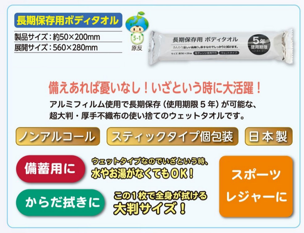 ☆溝端紙工印刷 長期保存用ボディタオル
