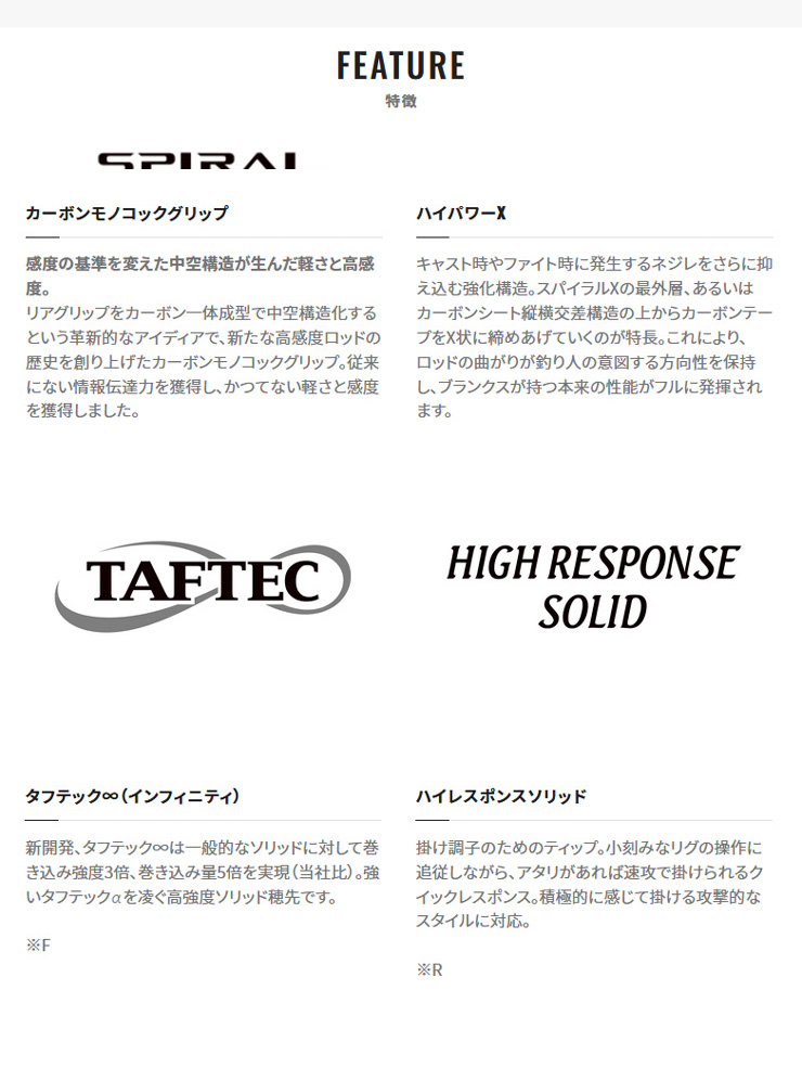 オモリグ対応調子「R」には[ハイレスポンスソリッド]を採用。