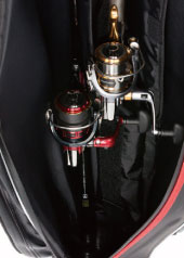 ・トーナメンター達が競技シーンで必要とする機能を凝縮 ・発泡EVA、PEボードをボディーに使用、衝撃からタックルをプロテクト ・ガイドカバー付きのロッドも収納しやすく先端部に余裕を持たせた設計 ・75cmのロングヒシャク、60cm四つ折り玉枠が収納可能な大容量ポケットを両側に装備 ・リール付きロッドを2本まで収納できる段差収納システム ・状況に応じて使い分けできる玉の柄ホルダーを両側に装備。玉枠付き玉ノ柄の飛び出しを防ぐストッパーベルト ・肩に優しく、つかみ易いグリップホール付き肩パッド ・内部には予備竿やチャラン棒等を区分けできるセパレーター、ロッド固定ベルト、インターラインワイヤーポケット、トップカバーポケット、多用途ポケット付き ・滑りにくく衝撃に強い2重成型ボトムカップ ・暗い時間でも光が当たると反射するリフレクター付き