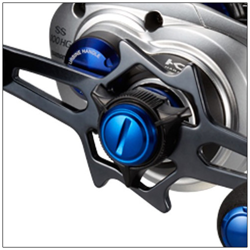 | ■コアフィットボディ 誘うも掛けるも自在の操作性を高めたホールド感。 通常はハンドル側に配置されるメカニカルブレーキのノブを、パーミングプレート側に移すことでコンパクト化したボディ。フィット感とバランスがアップし、カワハギ釣りにおける操作性が高まります。 | ■S-タービンハンドル 糸フケを出さないクラッチ操作のために。 親指でスプールを押さえながら、リールシート下側から回り込ませた指でハンドルを回転させることができ、理想のクラッチON/OFF、チョイ巻きまでも可能にすることで糸フケを瞬時に解消します。 |
