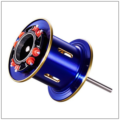 ■スーパーフリースプール クラッチを切った際、スプールを支えるのは2つのベアリングのみ。ガタツキを抑え、なおかつスプールフリー性能を極限まで軽くしたシステムです。 |