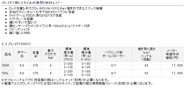 【ダイワ/両軸リール/エスブレイド/S.BLADE R/L】