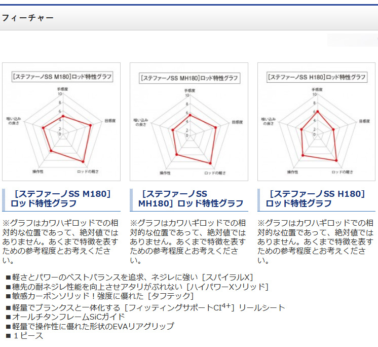 |  | 高次元のカワハギ釣りを楽しむ、軽量&高感度設計。 最新のカワハギ釣りに対応した3アイテムをラインナップ。 | シマノカワハギロッドのステイタス[Stephano]シリーズのコンセプトである、軽さや感度を受け継ぎ ながら、コストパフォーマンスに優れたアイテムが[ステファーノSS]です。カワハギ釣りの命とも言え る穂先部には高感度カーボンソリッド「タフテック」を極細カーボンテープで強化した「ハイパワーX ソリッド」を搭載。微かなカワハギのアタリを明確に察知することができます。リールシートは、軽量化 と操作性を追求したフィッティングサポートCI4+シートを採用。高次元のカワハギ釣りを楽しめる新 たなロッドが誕生しました。