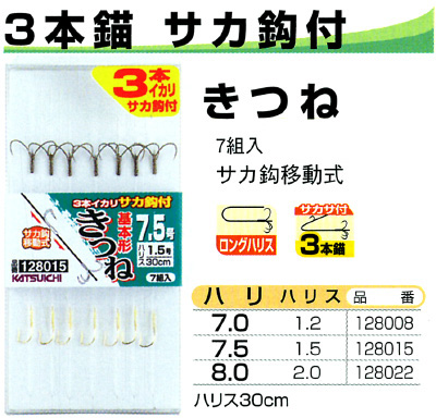 カツイチ 【アウトレット】3本錨 サカ鈎付 きつね【パッケージ傷・割れ】