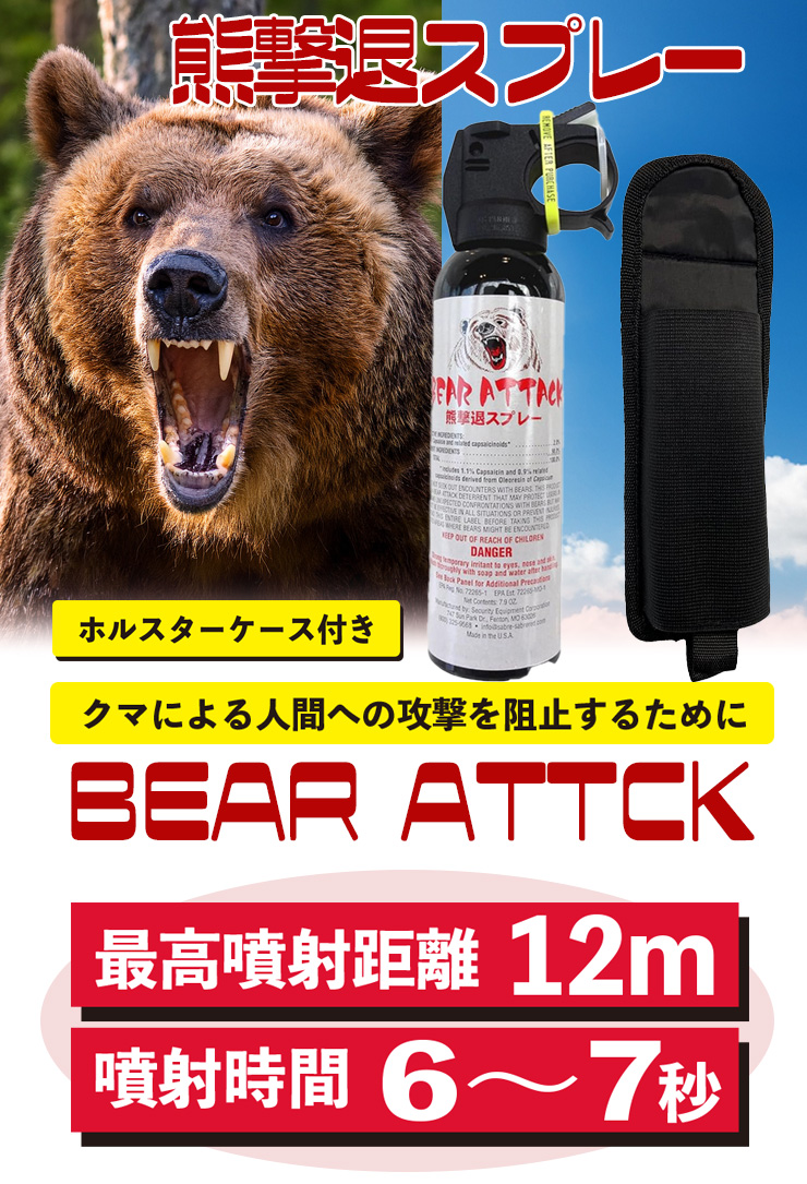 【熊|クマよけ|スプレー|熊撃退スプレー ベアアタック|登山、キャンプ】