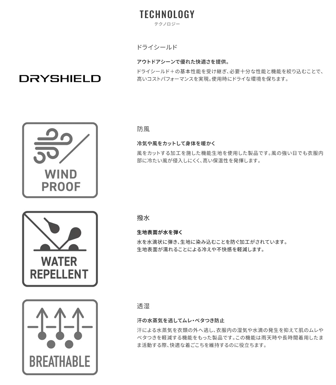 素材: 表:ナイロン100% (ポリウレタン透湿防風加工) 裏:ポリエステル100%