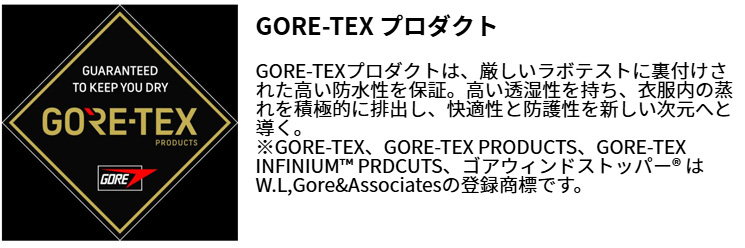 Productsの2層素材を採用。環境負荷の少ないフッ素フリー撥水剤を使用したモデル。コンビアップシステム付きで対応フローティングベストと合体することで、足元の視界を確保し安全性を向上。100gの中綿入りで保温性を保ちながらも、GORE-TEXの透湿性により蒸れずに快適な着用感。