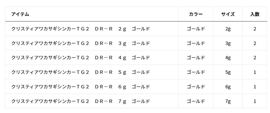 高感度・高比重 タングステン製ワカサギ専用シンカー。低重心設計で落下・誘い・巻上時もシンカーが暴れにくい!