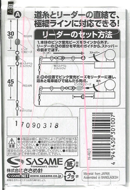 ササメ ワカサギ 電動用リーダー 極小ハリス止(2組入) N-401