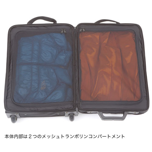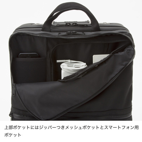 【Fabric】 1680Dナイロン 【Function】 ほとんどの航空会社で機内持ち込み可能なシンプルなデザインのウィーラー/サイズ別にフィットするネオプレーンのPCスリーブ/本体内部は2つのメッシュトランポリンコンパートメント/上部ポケットにはジッパーつきメッシュポケットとスマートフォン用ポケット/下部ポケットはネオプレーン製のスタッシュポケット/左右どちらのボタンでも作動するテレスコープハンドル/丈夫なホイールとハウジング/トップにクッション性のよいグラブハンドル/背面にネームカードウィンドウ 【原産国】 ベトナム 【Weight】 3,390g 【Color】 (K)ブラック、(ZG)ジンクグレー 【備考】 50×36×20cm 容量:36.5L