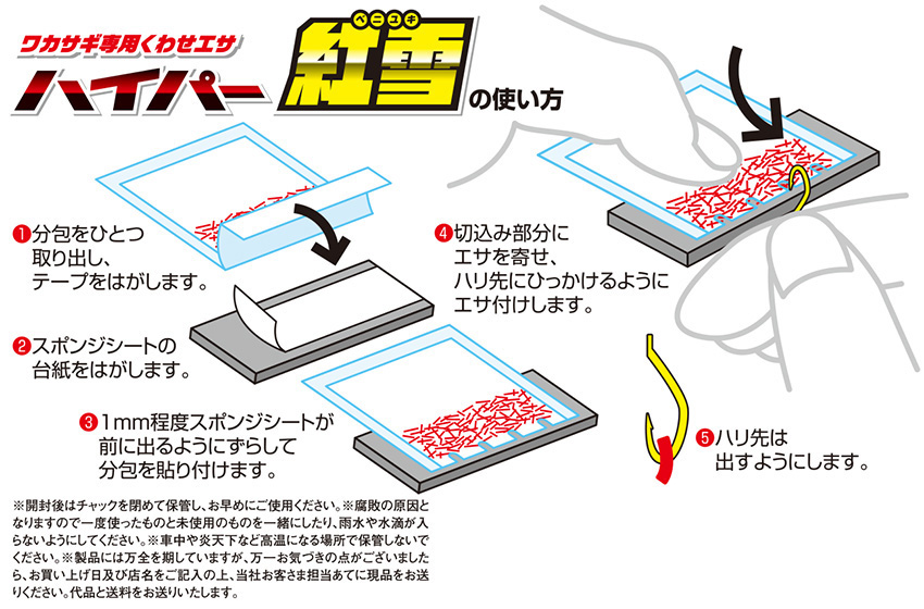 人工エサならではの使い勝手の良さと、ワカサギの好む成分などを徹底追求。