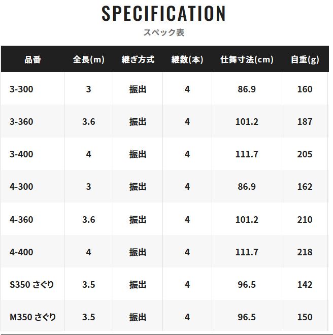 さぐりの2アイテムはズボ・ミャク釣りに対応する喰い込みが良いグラスソリッド穂先を搭載。
