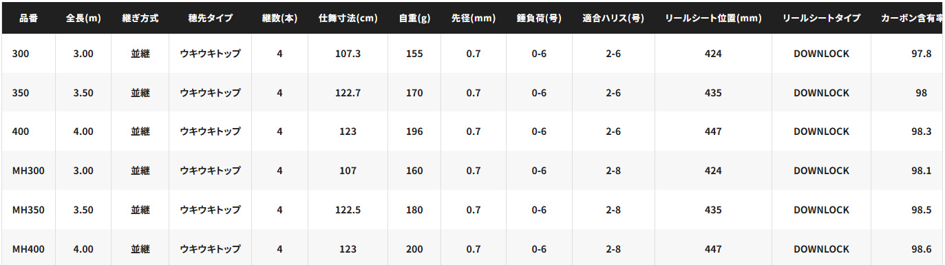 イケス中央を狙う際や置き竿釣法に優れた4mレングス。