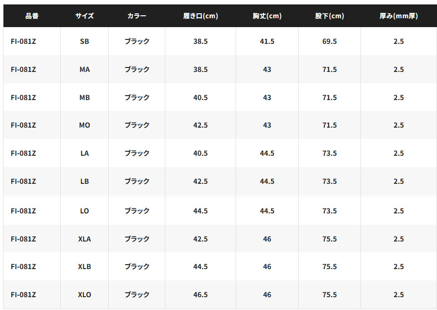 シマノ ☆【26NEW】スタンダードタイツ 2.5 FI-081Z |