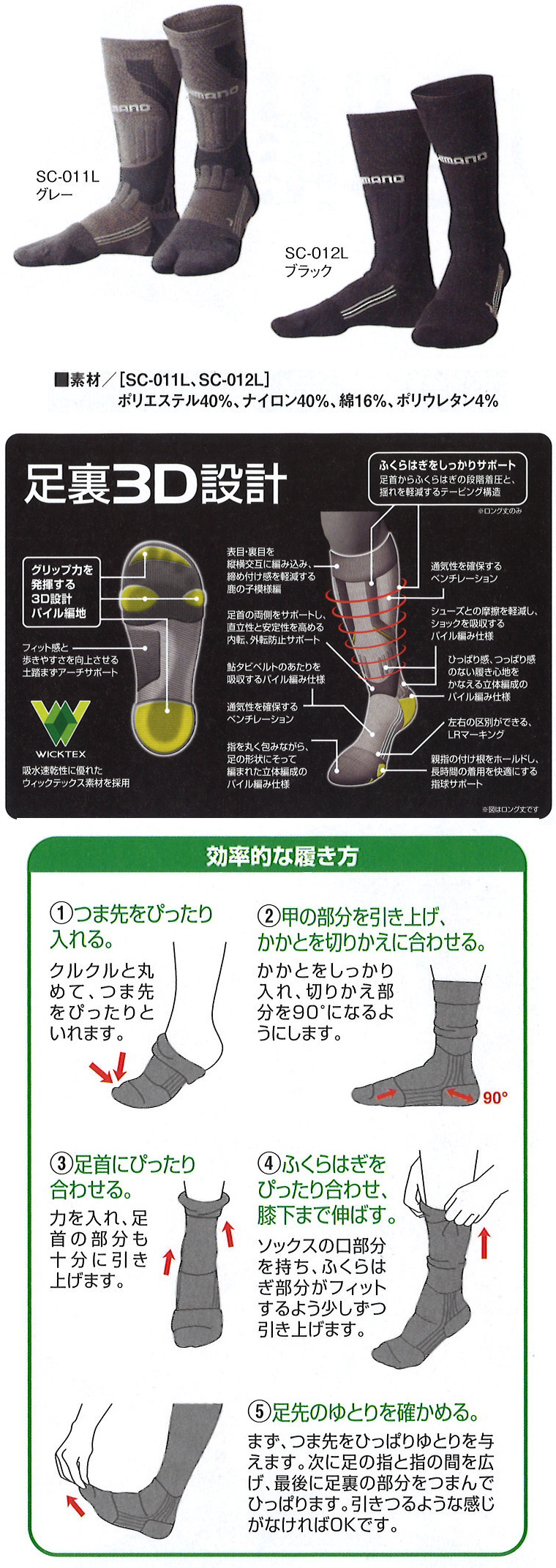 【鮎つり|シマノ ウィックテックス・3Dレギュラーサポートソックス(先丸)SC-012L】 アウトレット(展示品)未使用新品。 パッケージ(外箱etc)に擦り傷や汚れが少しあります。 シマノ ウィックテックス・3Dレギュラーサポートソックス(先丸)SC-012L ![]() 足裏にグリップ力を発揮する3D設計パイル編みと土踏まずアーチサポートを採用し、 快適な履き心地。足首からふくらはぎの階段着圧と揺れを軽減するテーピング構造で、 長時間の立ち姿勢でもしっかり足をサポート。 アウトレット(展示品)未使用新品。 パッケージ(外箱etc)に擦り傷や汚れが少しあります。 ※この商品の販売は終了しました。