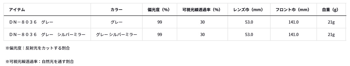 【レンズカラー】 グレー … 視界の色を変えることなく、一番ナチュラルに見えるカラー グレー + ミラー付き … グレーの特徴 + ミラーが付くことで外から目元が見えにくく、ファッション性が高い