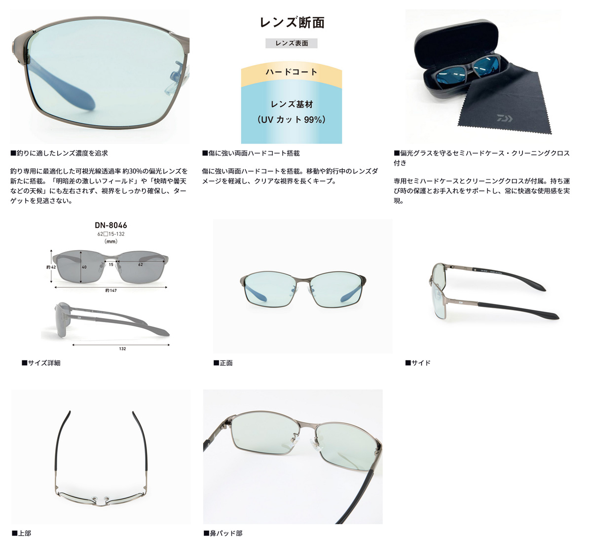 【ダイワ|偏光グラス|鮎釣り|薄型レンズ】| トリアセテート偏光グラス DN-8046 |  | 釣りに最適な視界をキープするコストパフォーマンス抜群の偏光グラス新登場! | 釣りに必要な基本性能をしっかりと備えた、コストパフォーマンスに優れた偏光グラス。