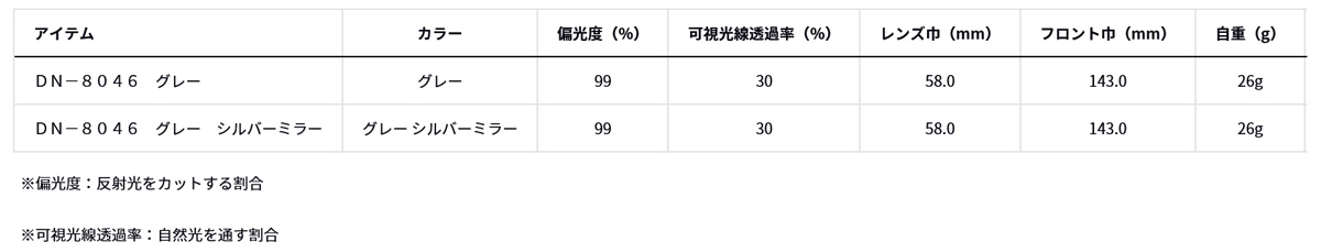 【機能詳細】 釣りに適したレンズの濃さを追求(可視光線透過率 約30%) 水面のぎらつきを抑える偏光性能(偏光度99%) 傷に強い両面ハードコート搭載 有害な紫外線を99%カット(UVカット99%) 衝撃から偏光グラスを守るセミハードケース付き レンズを清潔に保てるクリーニングクロス付き 薄くて軽量、偏光機能にも優れたトリアセテートレンズ採用 フレームカラーはガンメタル / マットブラック