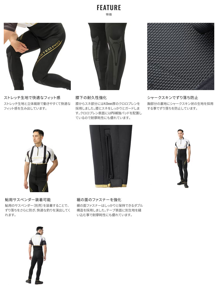 | | ストレッチ性の高いジャージ生地と立体裁断を採用し動きやすさとフィット感を両立させたタイツです。膝下部分をしっかりと補強。耐久性、保護性にも優れたリミテッドプロモデルのタイツです。 |