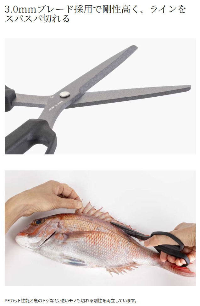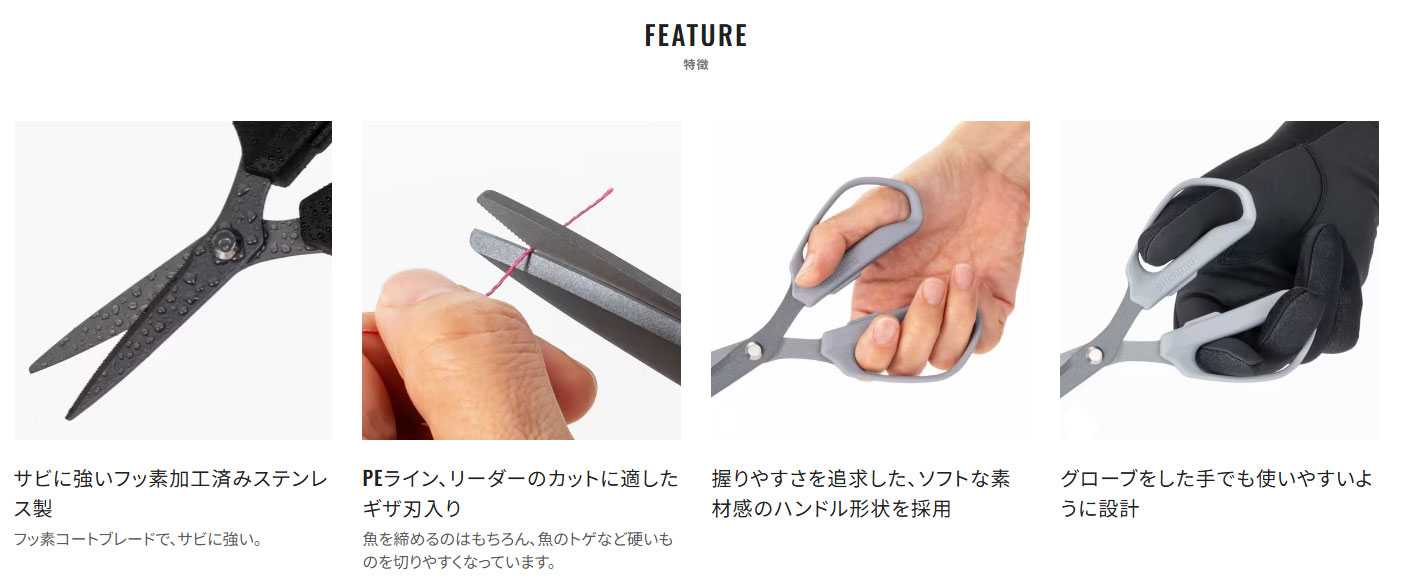 【シマノ|ハサミ|万能】スパシザー ラージ CT-524Y  | PEラインから魚捌き、トゲ切りまで使える刃物職人こだわりの万能バサミ。手袋をしたままでも使いやすいハンドルを採用。 約800年の歴史を誇る、世界的な刃物の産地・岐阜県関市の職人がひとつひとつ手作業で造った、さまざまな用途に対応した万能なハサミです。切りにくいPEラインもテンションをかけずに切れるほか、魚の捌きやカワハギなどのトゲ切りまで対応。またハンドル部分は、手袋をつけたままでも使いやすいように穴が大きなデザインを採用しています。