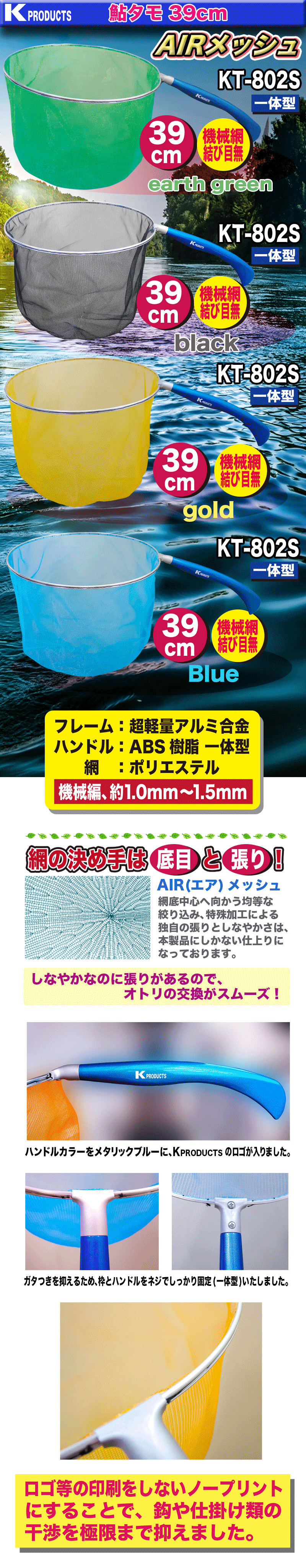 Kーproducts ☆鮎タモ AIRメッシュ39cm KT-802S【YT】