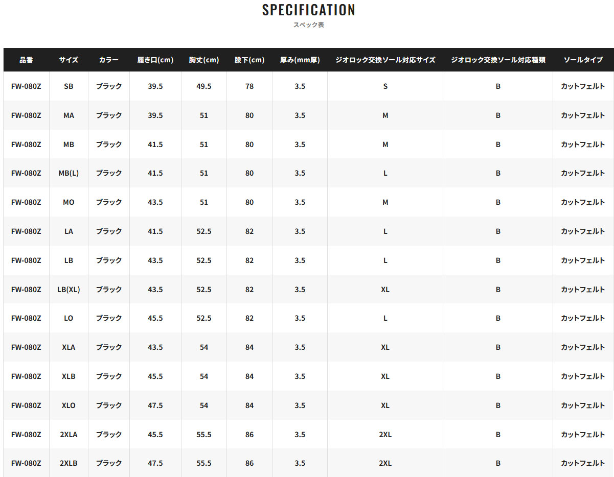 シマノ ☆【26NEW】スタンダードジオロックスリムウェーダー 中割 3.5 FW-080Z |