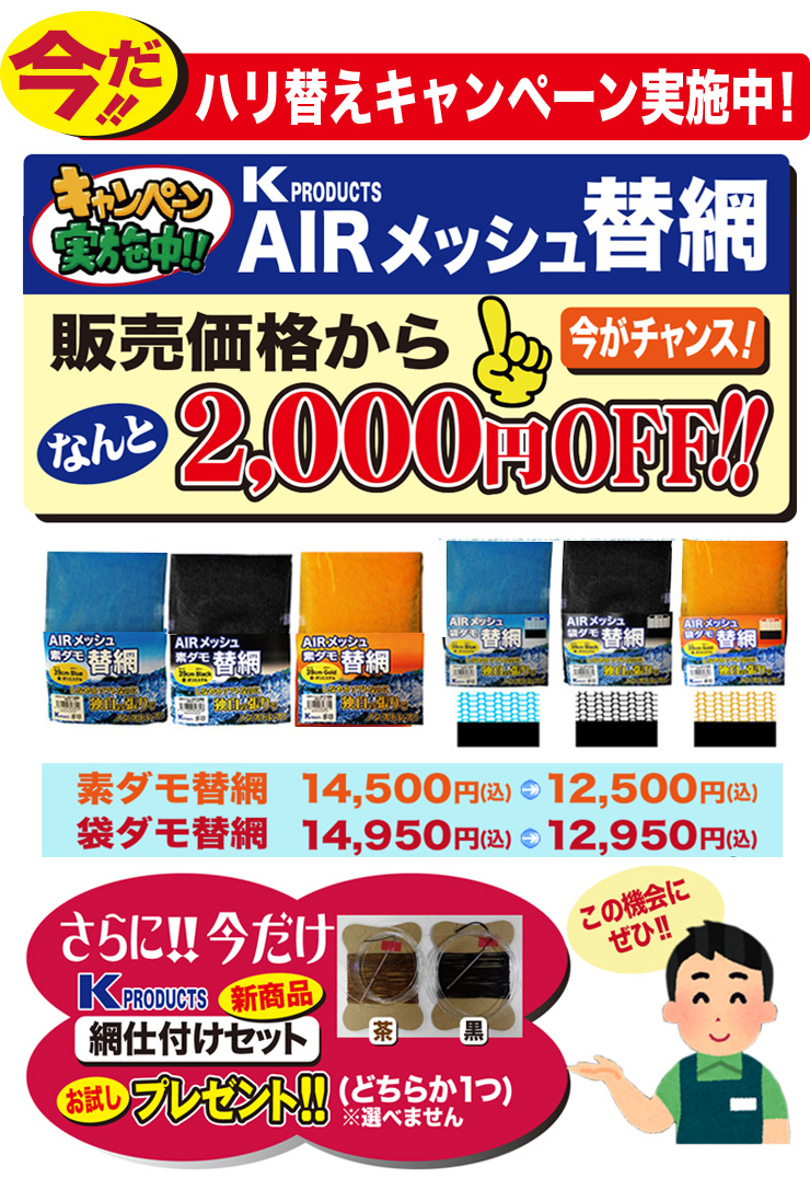 Kーproducts AIR(エア)メッシュ素ダモ替網 39cm【特典付】【YT】