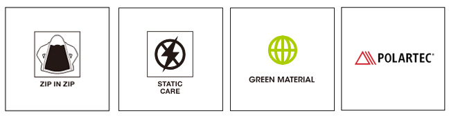 ボリュームのある毛足の長いフリースで保温性を確保。外襟、脇、袖下はストレッチ性のあるフリースを使用し、身体の動きにスムーズに追従します。ZIP IN ZIPシステムにより、フロントファスナー、袖口と首元のスナップボタンでアウターとの連結が可能です。