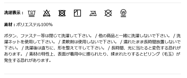 | ●素材 表 :グリッドバックフリース(100% リサイクル ポリエステル) 裏:100% ポリエステル |
