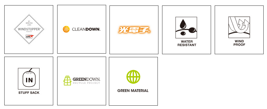 表地には非フッ素メンブレンによる30デニールのGORE-TEX WINDSTOPPER 2層構造を使用。防風性とともに耐水性もあり、多少の雨や雪に対応します。中わたには、特殊セラミックスの遠赤外線効果により優れた保温効果が持続する光電子ダウンを封入。高度な洗浄技術により、汚れを徹底的に除去したクリーンなダウンが高い保温性を確保します。中わた入りの内襟やフロントのダブルフラップなどでコールドスポットを軽減。携行に便利なスタッフサック付きです。
