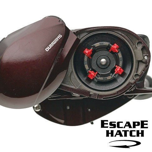 | SVS∞(2014年NEW機構) スライドでON/OFFの切替が 可能 イージー&スムーズセッティング。爆発的な飛距離を弾き出す次世代遠心力ブレーキ。 | S3Dスプール スプールの振動ノイズが半減(当社従来比) 安定したキャスト性能を実現する低振動スプール。 | エスケープハッチ ワンタッチでサイドプレートをオープンでき、ブレーキ調整が容易にできる機構。 |