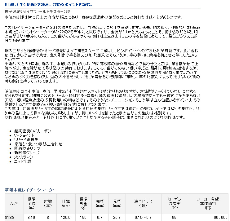 ダイワ 華厳本流レイザーシューターSG