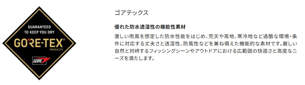 ゴアテックス®ストレッチと立体パターン設計により、動作時のストレスを軽減するフラグシップウェーディングジャケット。RA-025W以上に肩周りの可動域を確保し、ミドルレイヤーを着込んでも快適にキャスト可能。手首には片手で締められるクロロプレン袖口、裾には水の吸い上げを抑える素材を採用。滑り止めやフード形状、ネットループなど細部まで配慮し、釣りへの集中をサポート。塩ガミを軽減するビスロンファスナーやショート丈設計も特徴です。