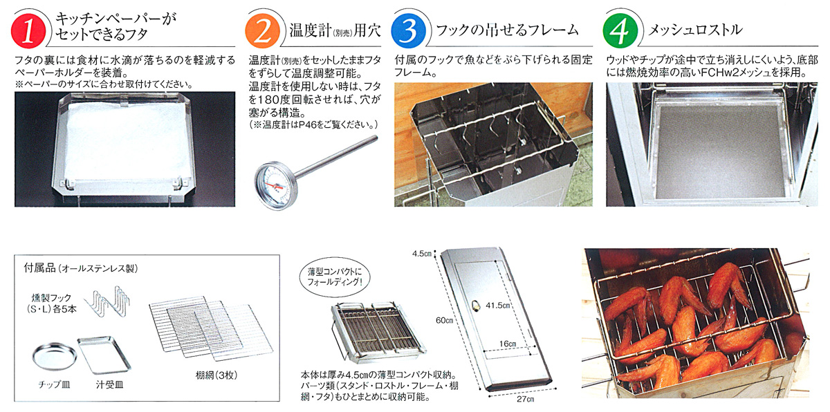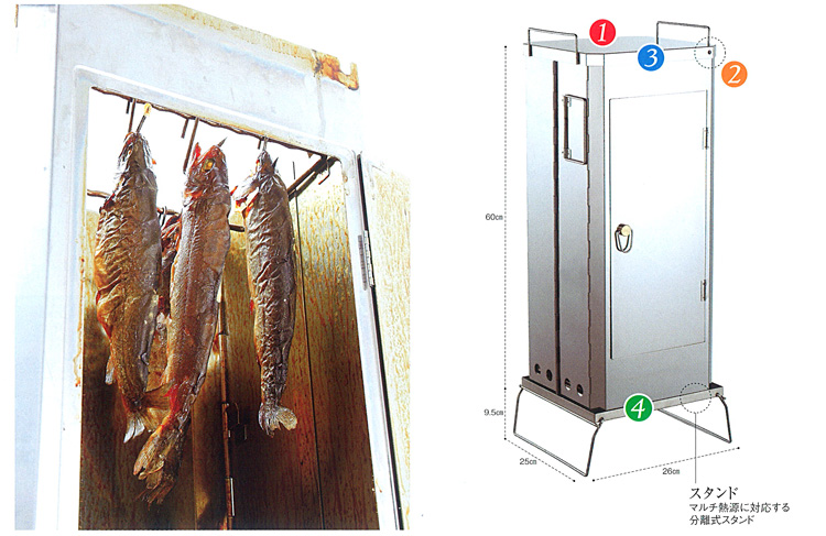ゆったりとした中、時間を掛けて燻製を仕上げるのも楽しみの一つです。『FS-600』はオールステンレス使用のフォールディング型スモーカーです。