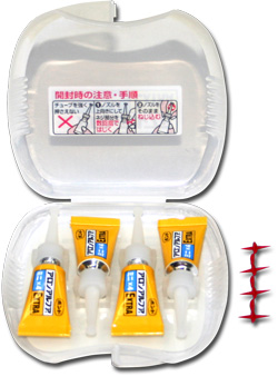 一回使い切りタイプが4本入っています。携帯にも便利なケース付。
